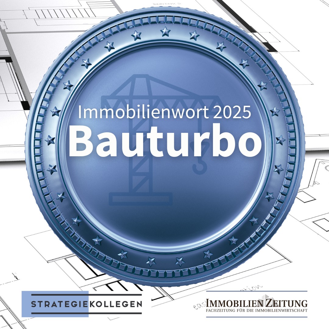 Wiesbaden/Berlin, 20. Januar 2026 ‒ Die Immobilien Zeitung (IZ), ein führendes Fachmedium der Immobilienwirtschaft, und die Strategiekollegen GmbH, eine Agentur für strategische Kommunikationsberatung mit Fokus auf die Immobilienwirtschaft, haben ihre Suche nach dem Immobilienwort des Jahres 2025 beendet. Insgesamt 317 Personen haben sich an der digitalen Umfrage beteiligt. Die Entscheidung in diesem Jahr war deutlich. 51 Prozent der Befragten haben für den Begriff „Bauturbo“ gestimmt. Dahinter folgen deutlich abgeschlagen die Immobilienwörter „Talsohle“ (14 Prozent) und „Refinanzierung“ (8 Prozent).